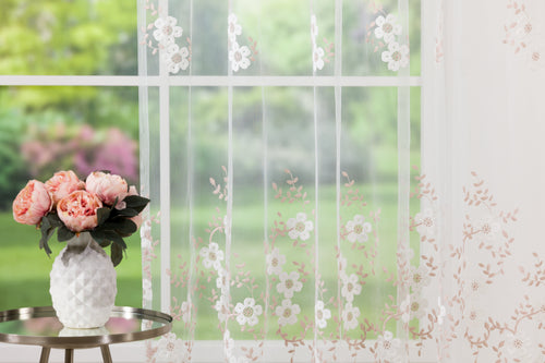 AFRODITA Pink floral Custom Made Curtains - sheer